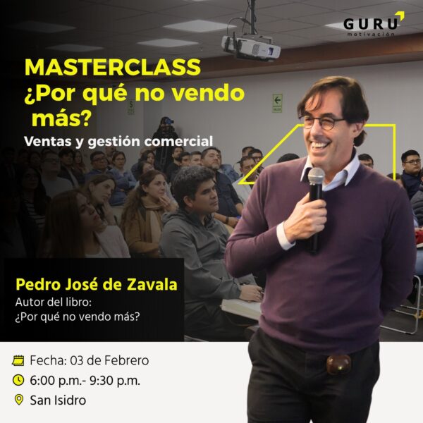 Masterclass de Ventas con Pedro José de Zavala; prospecta mejor, domina objeciones y cierra más ventas. Metodología 100% práctica. ¡Cupos limitados!
